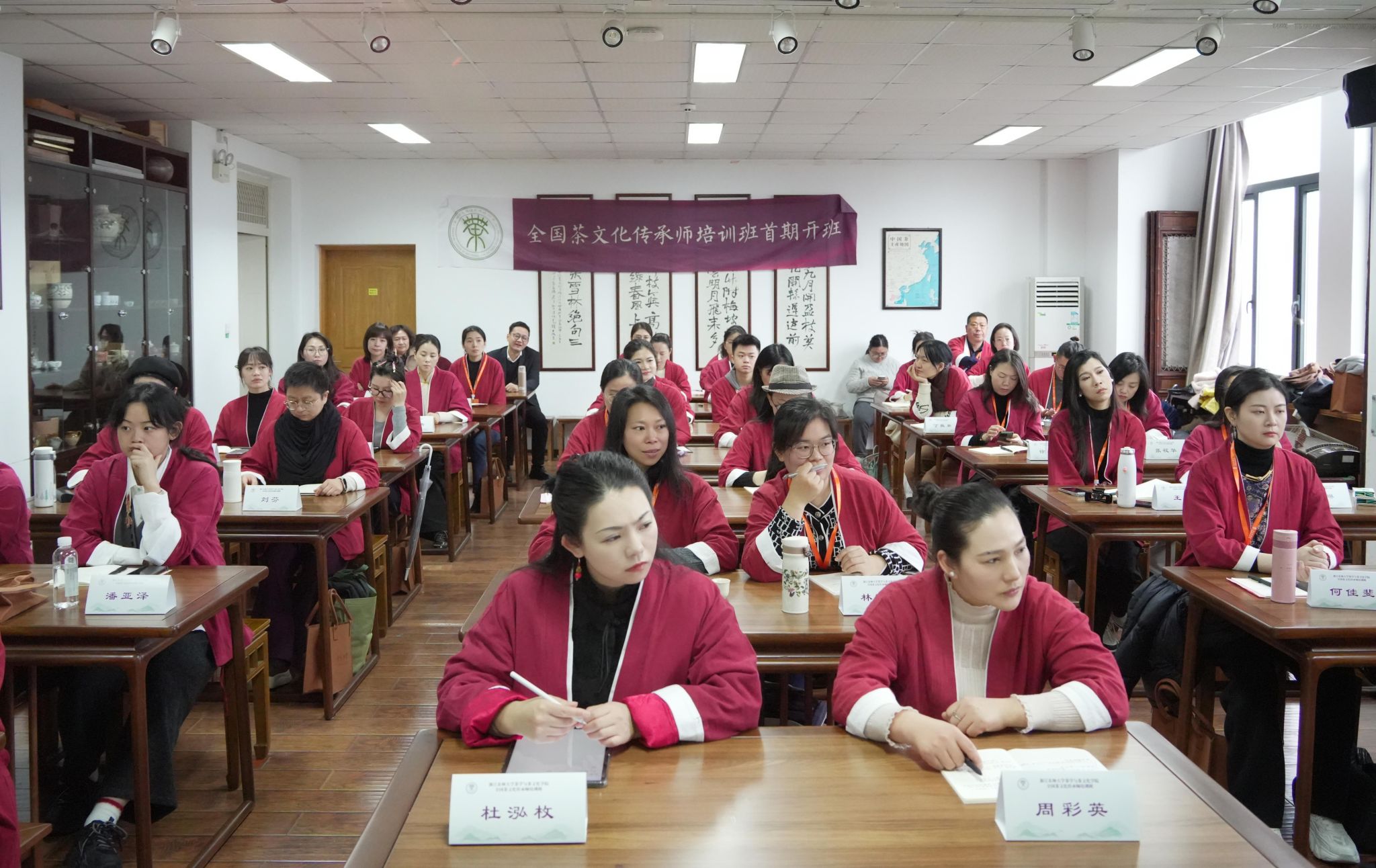 近日,由浙江農(nóng)林大學(xué)茶學(xué)院與宋溪湖書院共同發(fā)起的全國(guó)茶文化傳承師培訓(xùn)班在浙江農(nóng)林大學(xué)東湖校區(qū)開班。全國(guó)茶文化傳承師培訓(xùn)中心主任鄭小美,浙江農(nóng)林大學(xué)茶學(xué)院名譽(yù)院長(zhǎng)、茅盾文學(xué)獎(jiǎng)獲得者王旭烽,全國(guó)人大代表、國(guó)家級(jí)非遺大師樊生華等,應(yīng)邀為來自全國(guó)各地的茶文化愛好者與從業(yè)者進(jìn)行培訓(xùn),共同開啟一段茶香四溢、文化深厚的傳承之旅。